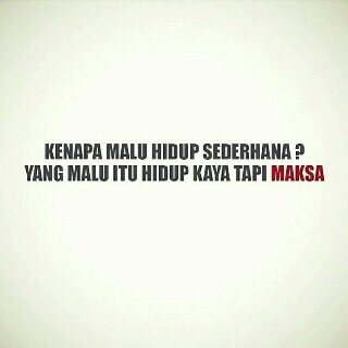 Seharusnya kita bisa untuk hidup sederhana,karena semua harta yang kita dapatkan di dunia tidak akan kita bawa mati,dan semua harta kita di dunia harus di pertanggung jawabkan di akherat nanti,untuk apa hidup kaya tapi dengan memaksakan diri,hasil nya pasti gak baik untuk kehidupan kita ?